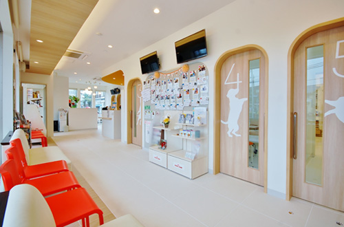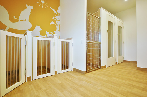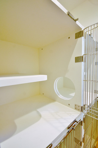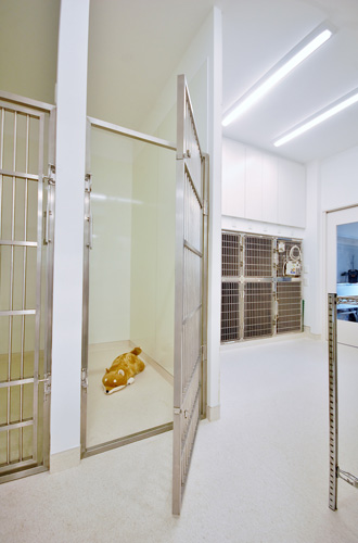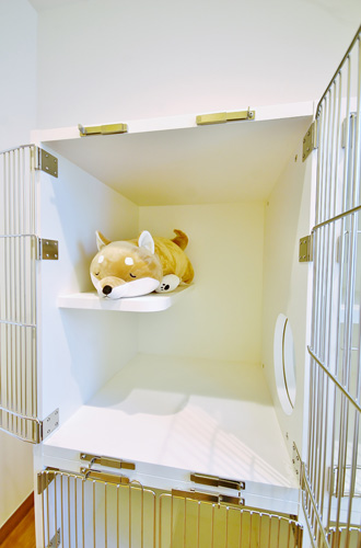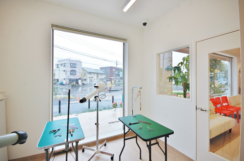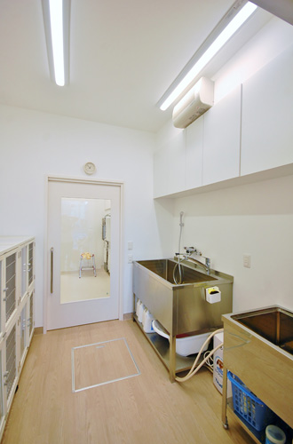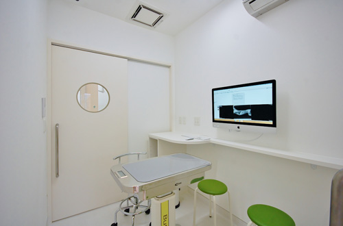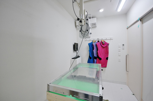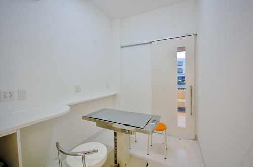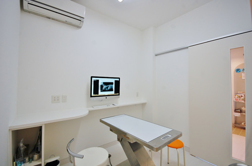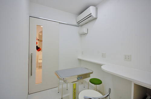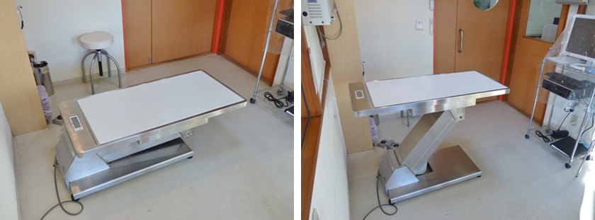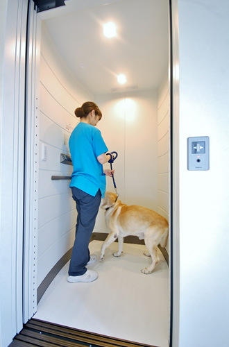 当院はアーム式の診察台を使用する事で電動で診察台が低い位置まで下げる事ができますので大型犬等に負担無く診察台に載せてあげる事ができます。 |