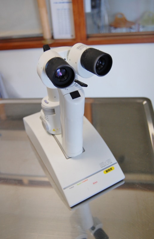 眼科検査の機械で眼の表面や周囲、中の構造を拡大し細かく観察します。 |