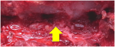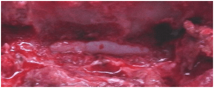 椎間板を取り除いた後の写真です。 神経が正常な位置に戻りました。 |